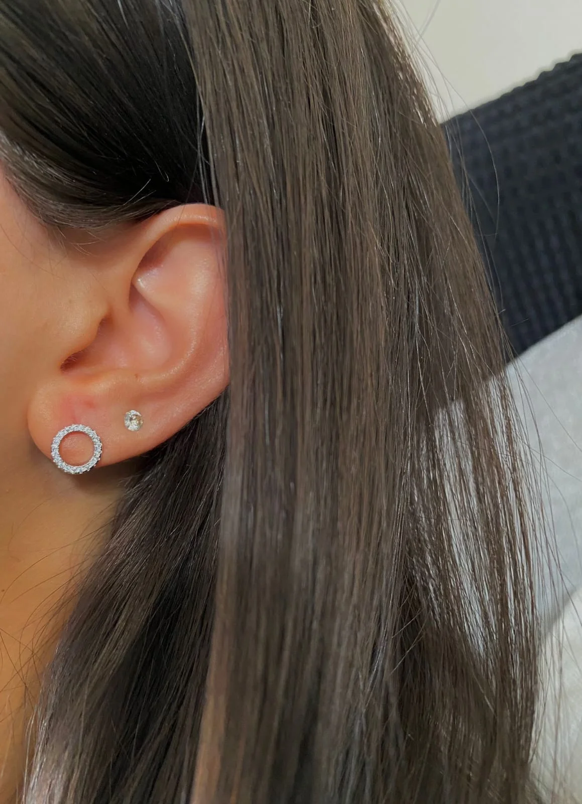 זוג עגילי ” עיגול חלול ” משובצים זירקון מכסף L-45
