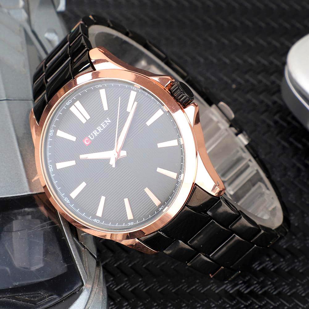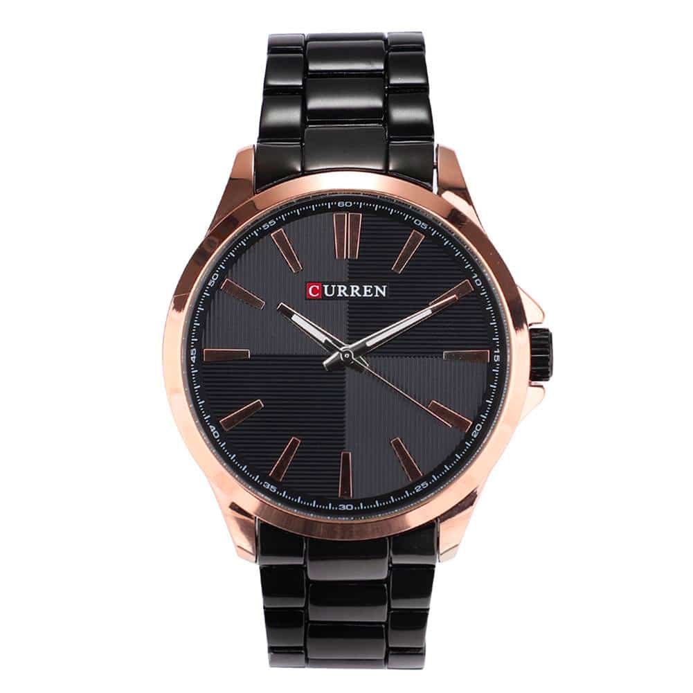 שעון שחור בשילוב זהב אדום מבית ” Curren ” מפלדת אל חלד בעיצוב מרשים במיוחד!