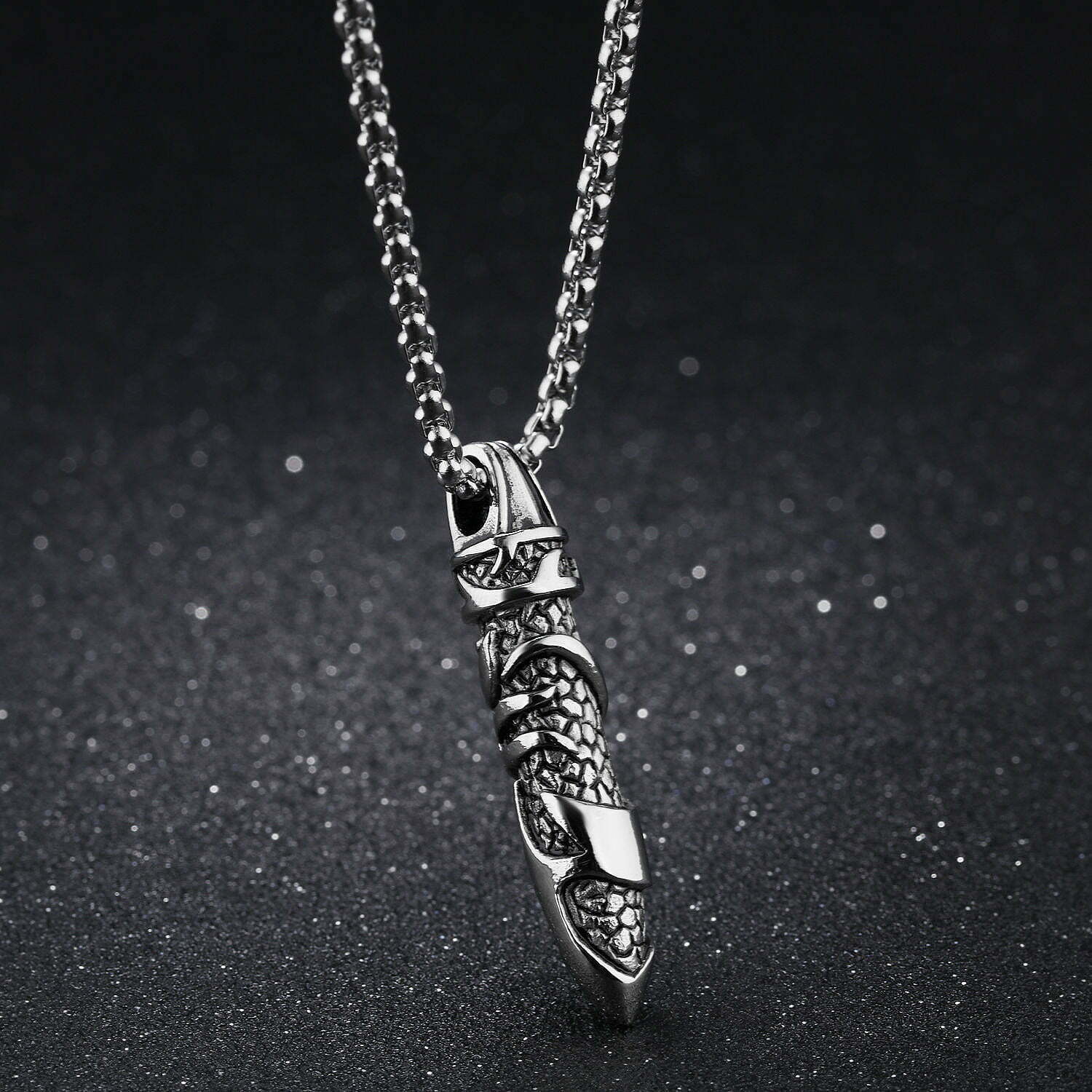 שרשרת עור הדרקון לגבר, עשוי מפלדת אל חלד איכותית בציפוי כסף בעיצוב שובר שיאים.